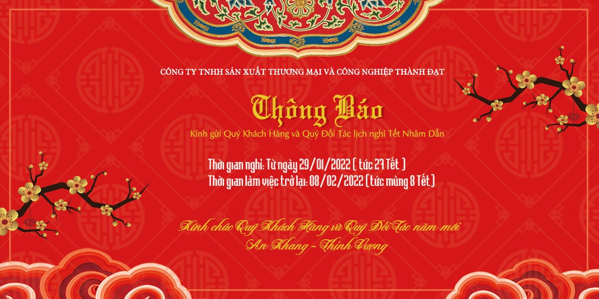 Thành Đạt xin trân trọng gửi tới Quý khách hàng, Quý đối tác lịch nghỉ Tết nguyên đán của Công ty như sau: